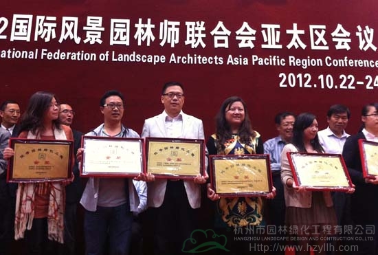 2012年度中國風(fēng)景園林學(xué)會“優(yōu)秀園林工程獎”共頒出獲獎項(xiàng)目195項(xiàng),其中,“優(yōu)秀園林綠化工程獎”185項(xiàng),“優(yōu)秀園林古建工程獎”10項(xiàng)。杭州市園林綠化工程有限公司承建的中國鐵建?國際城(杭州)示范區(qū)園林綠化工程和深圳市國道205深圳段改建工程景觀綠化工程G5402標(biāo)段雙雙榮獲金獎。
