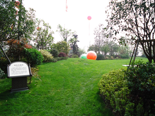 更引人注目的,還有銷售展示中心前面的雕塑噴泉,該噴泉運(yùn)用花崗巖整石雕刻拼接而成,工藝極其復(fù)雜,自上而下不斷灑落的水花,營(yíng)造出一片清涼;無(wú)以復(fù)加的鏤空鐵藝圓頂繁復(fù)花紋和拱門的石材立面裝飾的皇家景觀亭,精致中透露出大氣;潺潺溪流、霧氣繚繞的人工溪澗,如夢(mèng)似幻;大面積的高爾夫果嶺草坪蜿蜒起伏,華貴雍容……