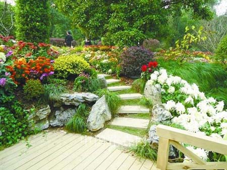 《綠廬》位于杭州市植物園企業(yè)展區(qū)的最南面,通過多種手法的綜合應(yīng)用,營造出了一個(gè)寧靜、祥和、遠(yuǎn)離塵囂而又不失色彩的鄰家后花園。紅樓青瓦,綠樹紅花,出門即水,河畔有山,臨水而居,靠山而行。小徑通幽,移步換景,人工雕琢,又不失自然風(fēng)韻?!耙粋€(gè)遍地植菊的庭院,一幅自然而韻味十足的菊花景觀,人行其中,步伐、氣息、身影交錯,與景觀和諧地融為一體,不但展現(xiàn)出城市生活中人們努力追求或回憶的一種起居文化,更是人生和、淡、清、雅的一種精準(zhǔn)體現(xiàn)。”該工程負(fù)責(zé)人的一番話,道出了《綠廬》所蘊(yùn)含的主題與豐富內(nèi)涵。