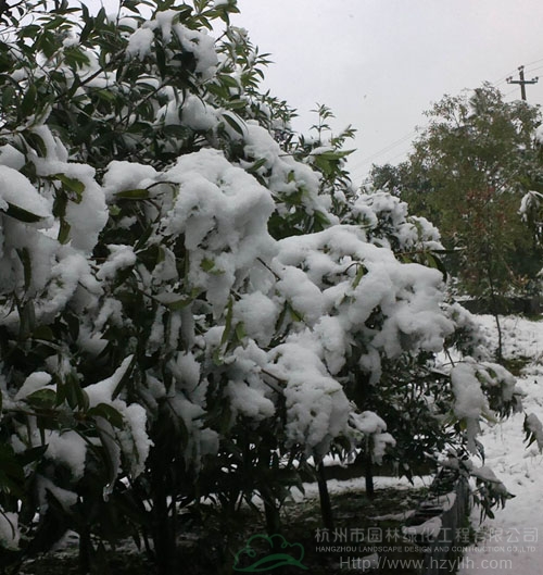 2月19日,一場(chǎng)暴雪突然而至,紛紛飄落的雪花,給了人們一個(gè)措手不及。厚厚的積雪給杭州市園林綠化工程有限公司各苗木基地的設(shè)施及露地花木造成了極大威脅。為了減少損失,基地人員在部門領(lǐng)導(dǎo)的帶領(lǐng)下開展了積極的抗雪工作。