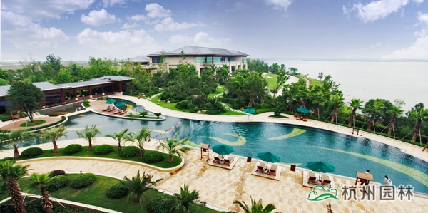 如今,走進(jìn)吳江東太湖溫泉度假酒店,開(kāi)闊大氣的入口景觀,整齊劃一的行道樹(shù),道路兩側(cè)花境式的植物組團(tuán),首先帶給人一種高端、原生態(tài)的感覺(jué)。隨著蜿蜒的園路不斷延伸,更多的園林美景一一呈現(xiàn):開(kāi)闊的草坪起伏有致,自然式的花境布置清新雅致,造型獨(dú)特的黑松、女貞盡顯莊嚴(yán)華貴,婚禮草坪處處充滿(mǎn)浪漫氣息,露天泳池彌漫著濃郁的熱帶風(fēng)情,溫泉泡池區(qū)懷舊氣息撲面而來(lái),湖邊的觀景平臺(tái)則將自然美景盡收眼底……大氣中盡顯華貴雍容,細(xì)節(jié)中隨處可見(jiàn)精致品味,文化氣息處處流轉(zhuǎn),自然美景比比皆是,園林與建筑渾然一體?!半m由人作,宛自天開(kāi)”,是對(duì)該項(xiàng)目最凝煉的贊譽(yù)。