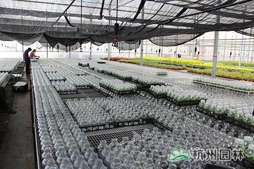 杭州畫境種業(yè)有限公司徑山基地基礎(chǔ)建設(shè)已于2014年基本完工,包括蔭棚地塊建設(shè)、基質(zhì)攪拌、辦公室、倉(cāng)庫(kù)等,其中,新建的溫室大棚已全面投入使用,由公司自行組培的16萬(wàn)棵火焰南天竹也進(jìn)入了煉苗階段,畫境種業(yè)的員工和工人們一起,通力合作,爭(zhēng)取以最高的效率完成煉苗工作,總經(jīng)理黃民強(qiáng)也親臨現(xiàn)場(chǎng),給大家指導(dǎo)與支持。在領(lǐng)導(dǎo)的關(guān)心下,大家信心倍增,計(jì)劃在一周內(nèi)完成全部煉苗工作?;鹧婺咸熘?,是公司組培研發(fā)生產(chǎn)的新品種,它植株低矮,枝葉密集;幼葉及冬季葉亮紅色至紫紅色,初秋葉變紅色,比南天竹紅色葉深,變色期早;喜溫暖濕潤(rùn)、通風(fēng)良好的半陰環(huán)境,較耐寒,生長(zhǎng)較快,在園林景觀中的應(yīng)用比較廣泛。