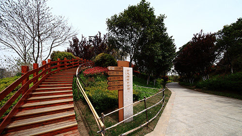 為恢復(fù)植被,修復(fù)裸露的山體,工程中應(yīng)用了大量的植物,其中,榔榆、喜樹、樸樹、三角楓、黑松、香樟、銀杏、無患子、女貞、欒樹、七葉樹、五角楓、楓香、雪松、烏桕、廣玉蘭、黃連木、黃金槐、馬褂木等喬木50余品種,2.3萬余株,鄉(xiāng)土樹種占88%;垂絲海棠、映山紅、櫻花、紫薇、金絲繡球、含笑、紫葉李、茶梅、紅梅、紅櫨等花灌木100余品種,2.5萬余株;紅葉石楠、金森女貞、扶芳藤、南天竹、灑金珊瑚、水果蘭、六道木、檉柳、衛(wèi)矛、無刺枸骨、毛鵑、連翹、金鐘、迎春、紅花檵木等綠籬40余品種,面積約4.1萬平方米;各種宿根、球根、時令花卉和水生植物,如薰衣草、金雞菊、郁金香、鳶尾、牡丹、金絲桃、珍珠梅、繡線菊、美人蕉、荷蘭菊、蒲公英、亞菊、玉龍草、八仙花、瓊花、月季、薔薇等80余品種,面積約2.8萬平方米;鋪設(shè)草坪及地被麥冬等面積約8.7萬平方米。豐富的植物應(yīng)用,使得原本裸露的山坡披上了綠色的盛裝,公園內(nèi),春有百花爭艷,夏有綠蔭匝地,秋有金色滿園,即使到了冬天,也仍能看到滿山的綠色與生機(jī)。