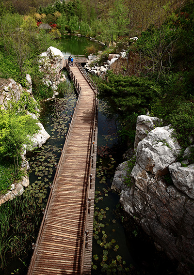 整個南北坡突出宕口景觀主體,設(shè)計(jì)4米觀光道570米、各種園路2000余米,配合多種步行方式并存的立體休憩交通網(wǎng)絡(luò)。