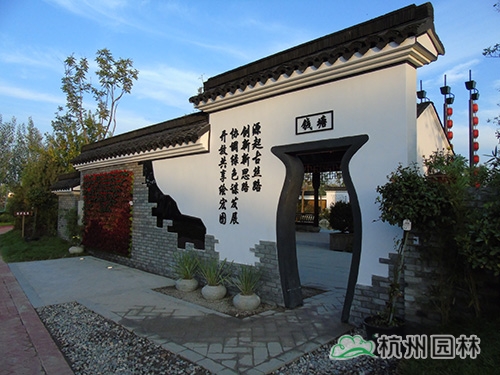 “浙江園以‘浙?鄉(xiāng)?綢’為設(shè)計主題,采用傳統(tǒng)浙江園林造景手法,以寫意的自然山水,展現(xiàn)浙江獨特的水網(wǎng)密布的地理地貌、小橋流水的江南韻味以及水鄉(xiāng)的蠶、茶文化,詮釋‘夢回江南、絲路通商’的概念,力求打造‘良渚源、蠶茶鄉(xiāng)、古韻風(fēng)、新思路’的歷史情境,巧妙植入園林新技術(shù)、新工藝、新品種,展示‘越溪浣紗、陌上錦霞、古道尋遺、煙氣汀州、絲路新語’等現(xiàn)代浙江園林景觀新風(fēng)貌?!笔┕がF(xiàn)場負責(zé)人方禮銀將“浙江園”的設(shè)計理念娓娓道來。