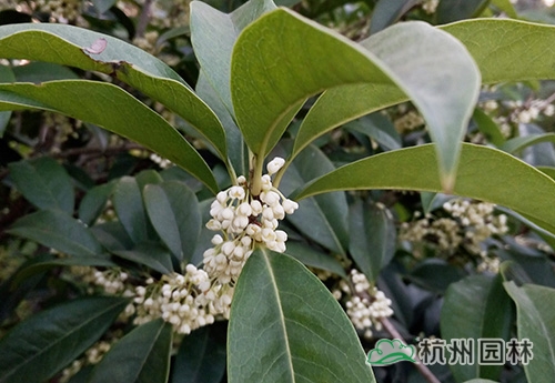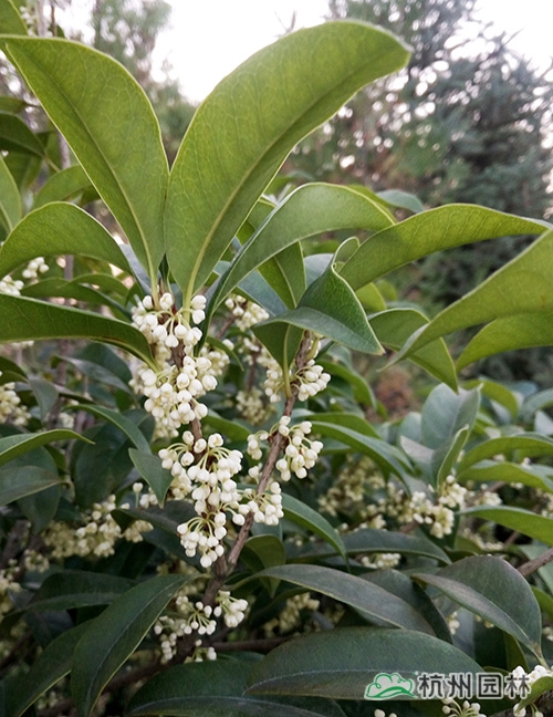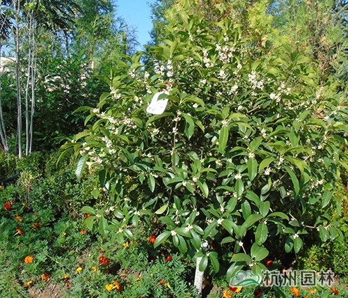 “浙江園”里應(yīng)用的桂花品種以丹桂和銀桂為主,共計(jì)50余棵,包括大喬木和小球類。為保證開(kāi)園期間的觀賞效果,這些桂花被提前運(yùn)送至銀川,利用當(dāng)?shù)氐牡蜏丨h(huán)境誘使其完成花芽分化,終于在九博會(huì)開(kāi)園時(shí)營(yíng)造出了桂花滿樹(shù)、滿園飄香的氛圍。