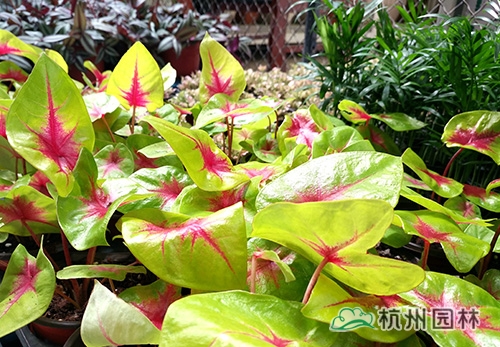 花葉芋:紅與黃交織的葉面色彩絢麗奪目,充滿(mǎn)了生機(jī)和活力,讓人的心情瞬間明亮起來(lái)。