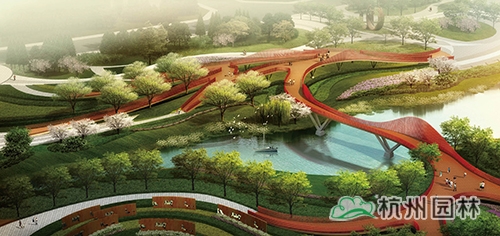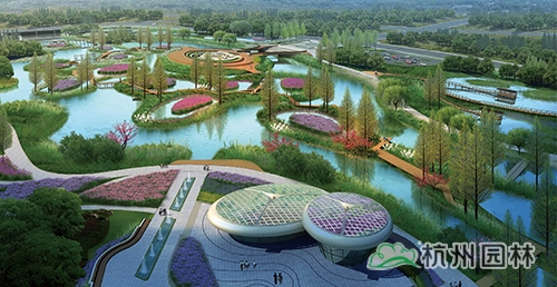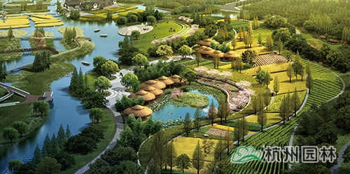 樂(lè)活園藝主題區(qū):以家庭園藝花園為主,是公園的圩田濕地體驗(yàn)中心,水道如巷,河汊如網(wǎng)的圩田農(nóng)藝景觀,呈現(xiàn)出田園牧歌般的意境。包含飄帶走廊、水蕩花田等景點(diǎn)。
