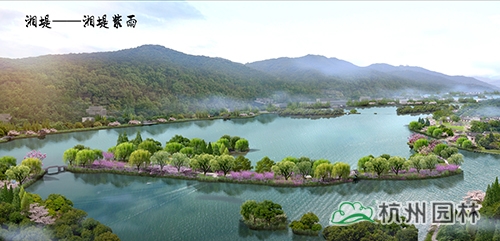 依據(jù)湘湖內(nèi)部自北向南的五堤,各堤路賦以色相植物,打造湘堤紫雨、越堤紅梅、楊堤秋染、長堤金風、賀堤碧玉。
