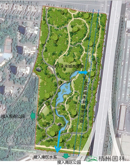 江干區(qū)東湖路市民公園位于東湖路與九喬街西南角,毗鄰九月庭院和泊林印象小區(qū),是江干區(qū)“一帶生態(tài)功能區(qū)”的“運(yùn)河—錢塘江—東湖路”U型生態(tài)軸的重要節(jié)點(diǎn)。結(jié)合已建成公園和高架互通施工預(yù)留地,對東湖路市民公園進(jìn)行統(tǒng)一規(guī)劃。