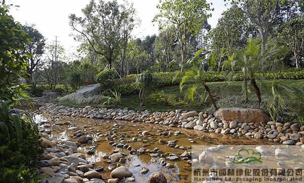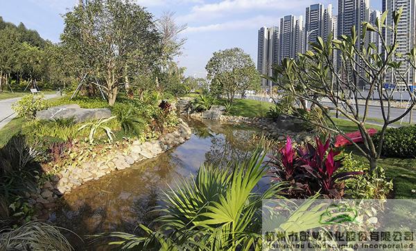 “項目將海綿城市理念融入公園建設,園路鋪裝采用透水混凝土,下雨時雨水可快速滲透,路面不積水;旱溪景觀則在下雨時蓄水,雨水可用于植物的日常澆灌,干旱時,鋪滿鵝卵石的水底又與周邊豐富的植物營造出另一種園林意境。”隨著葉偉華的介紹,項目建設中許多隱藏的細節(jié)不斷展現(xiàn),生態(tài)造園的理念進一步深入人心。