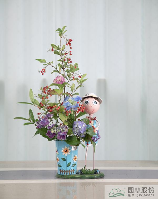 在風(fēng)景如畫的畫境·青山湖花園中心,以園林股份自主培育的繡球?yàn)椤爸鹘恰?,老師們用靈動(dòng)的雙手,無限的創(chuàng)意,制作出一幅幅新穎獨(dú)特的繡球花藝作品。所有花材均取自青山湖花園中心,不僅僅有“當(dāng)家花旦”繡球,還有企業(yè)自主培育的黃金枸骨、金橡樹葉冬青、花菖蒲等多個(gè)待申請新產(chǎn)品。
