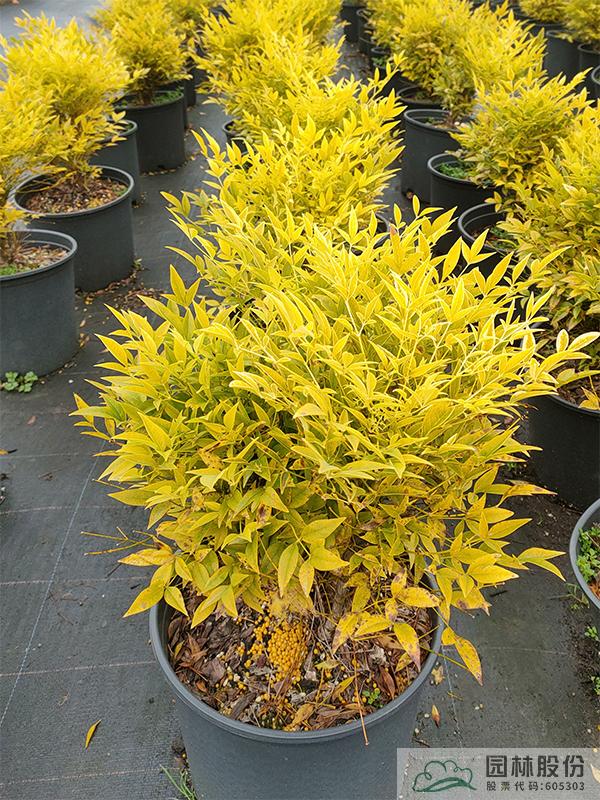 相較于其他南天竹品種,檸檬黃南天竹是少見的金黃色系品種,四季均能保持一個相當(dāng)亮眼的狀態(tài)。低矮飽滿的冠型與密集斜展的金葉,明顯區(qū)別于其他金色系植物品種。