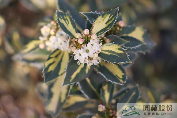 其中,彩葉冬青更是其中的佼佼者。除了果實可供觀賞外,它們還擁有黃色葉、藍綠色葉和銀邊葉等彩色葉片。葉形變異也是相當豐富,具四角狀,橢圓形,倒卵形等多種形狀;有些品種具有刺狀葉片,而有些則是光滑的葉片;有些品種葉緣還具有波浪狀的起伏。四季景觀分明,在春季,它們的莖腋間會簇生出一朵朵清新可愛的小花;而在當年生的枝條上,則會抽出亮麗的嫩葉。到了秋季,隨著氣溫的驟降,葉色會變得更加地明艷;冬季的時候,在雌性的植株枝條上,則會掛滿累累的果實。這些不同的形態(tài)和色彩變化,使得彩葉冬青在不同的時間和空間中呈現(xiàn)出不同的姿態(tài)、色彩與意境,從而提升了冬青品種的觀賞價值,成為園林景觀中重要的觀葉植物。