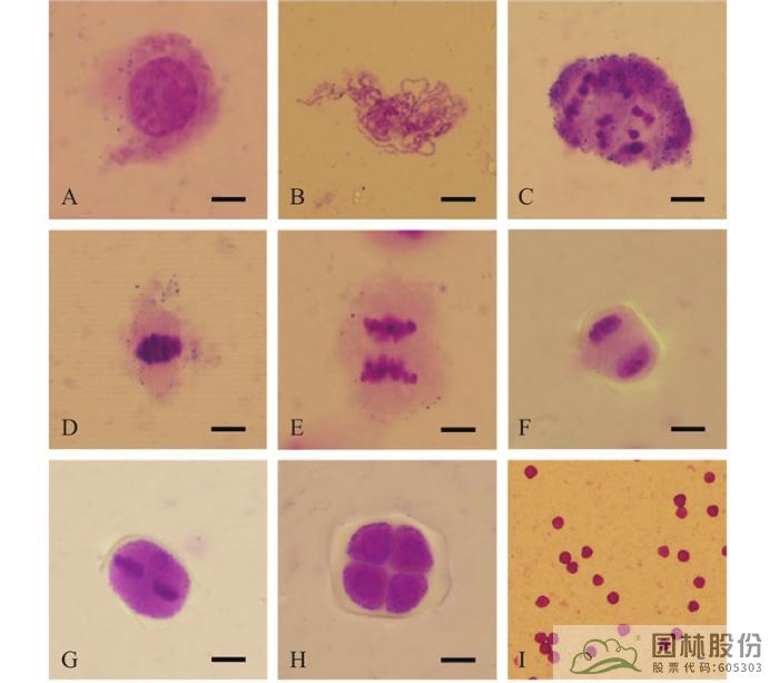 圖 1 繡球‘無盡夏’小孢子母細(xì)胞減數(shù)分裂過程