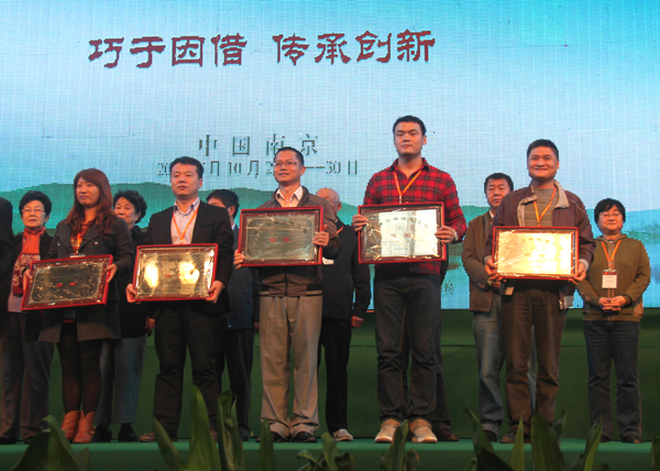 30日下午閉幕式的一個(gè)重要環(huán)節(jié)是為2011年度中國(guó)風(fēng)景園林學(xué)會(huì)優(yōu)秀園林工程獎(jiǎng)獲獎(jiǎng)單位頒獎(jiǎng)。由杭州市園林綠化工程有限公司承建的“昆明市市級(jí)黨政機(jī)關(guān)辦公用房搬遷建設(shè)項(xiàng)目區(qū)內(nèi)景觀綠化工程(第三標(biāo)段)”和“吳江市震澤鎮(zhèn)寶塔街西入口沿河、沿街北側(cè)、后花園仿古建筑工程”分別榮獲“中國(guó)風(fēng)景園林學(xué)會(huì)優(yōu)秀園林綠化工程獎(jiǎng)金獎(jiǎng)”和“中國(guó)風(fēng)景園林學(xué)會(huì)優(yōu)秀園林古建工程獎(jiǎng)銀獎(jiǎng)”。高總代表公司上臺(tái)領(lǐng)取了獎(jiǎng)牌。