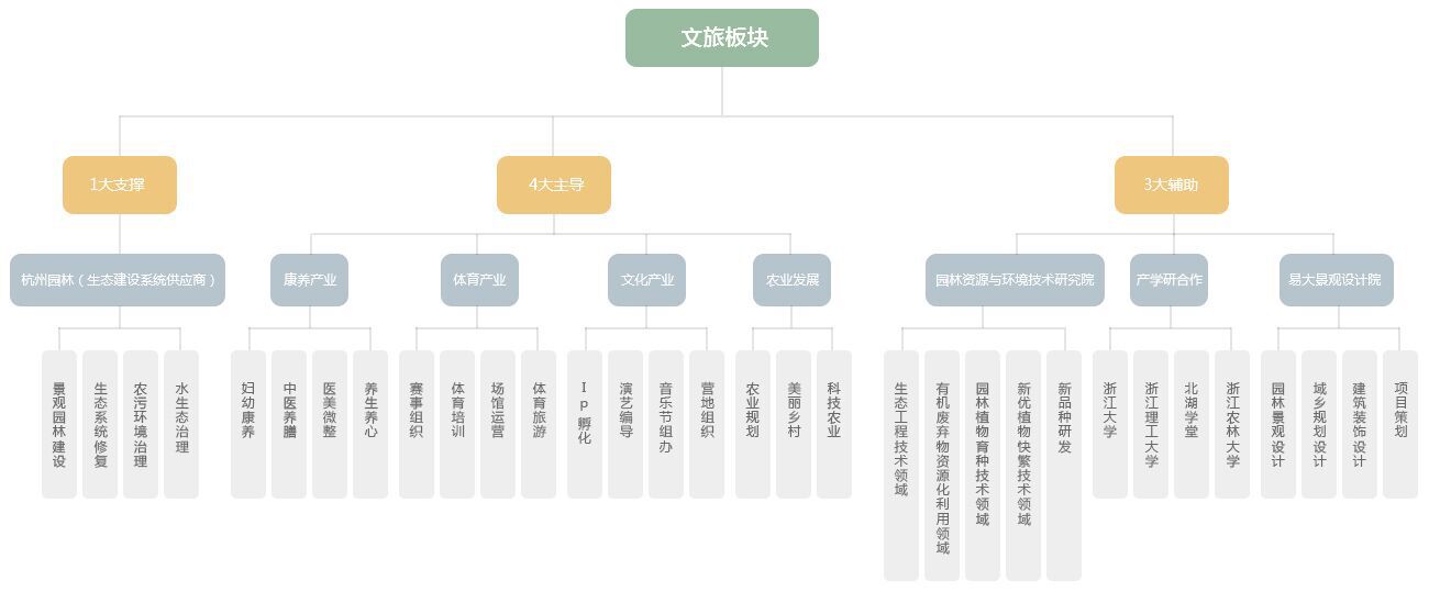 智慧文旅板塊(簡稱杭園文旅),秉承 “以生態(tài)促旅游,以旅游促發(fā)展”發(fā)展理想,緊隨美麗中國、鄉(xiāng)村振興戰(zhàn)略的指引,以新江南園林為核心特色,圍繞“宜居、宜業(yè)、宜游、宜養(yǎng)”核心理念,確立旅游景區(qū)、消費產(chǎn)業(yè)聚集區(qū)與新型城鎮(zhèn)化發(fā)展區(qū),三區(qū)合一發(fā)展思路,文化、農(nóng)業(yè)、旅游三產(chǎn)融合,新模式、新業(yè)態(tài)、新路徑三位一體的建設(shè)模式。鍛造以鄉(xiāng)村振興為支撐,以現(xiàn)代化農(nóng)業(yè)為基礎(chǔ),打造一二三產(chǎn)融合、資源稟賦的集康養(yǎng)、教育、體育產(chǎn)業(yè)為主導(dǎo),文旅+農(nóng)旅為輔助的文旅體系。