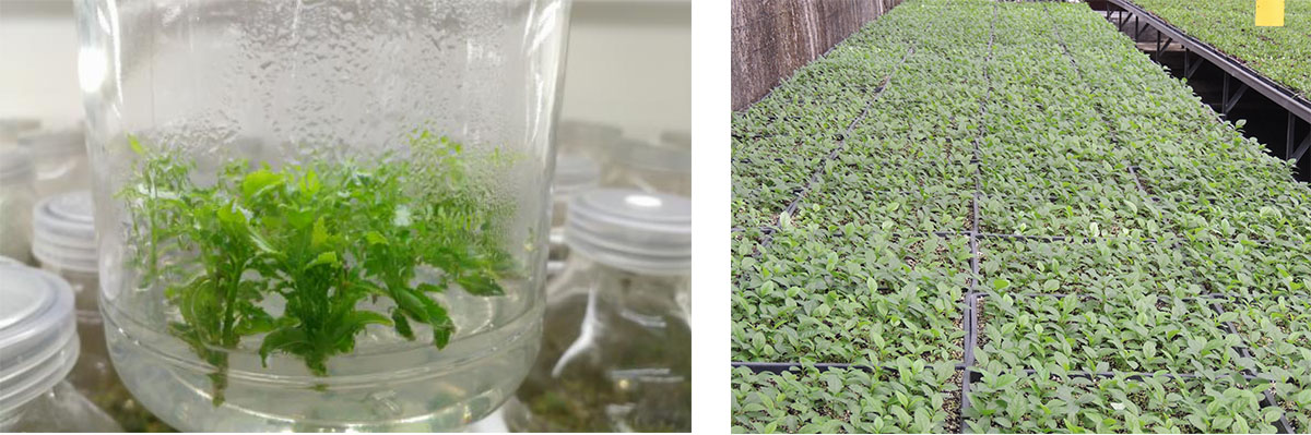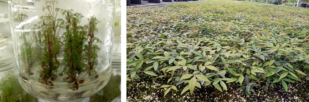 研發(fā)中心擁有1200㎡組培研發(fā)及生產(chǎn)車間,年產(chǎn)組培種苗500萬株。經(jīng)過多年的研發(fā),建立了南天竹屬、冬青屬、礬根屬、紫金牛屬、繡球?qū)佟褜俚榷喾N植物組培快繁技術體系,在木本植物組培快繁技術方面處于國內(nèi)領先水平。