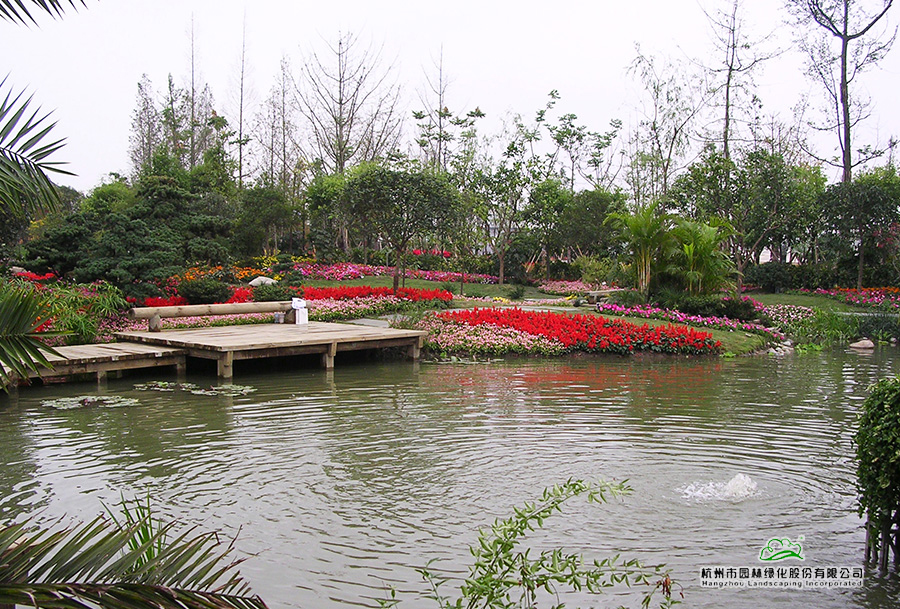 第六屆中國花博會之浙江園,又名花漫錢塘。占地面積1420平方米,呈自然式布局,全園以浙江山水為背景,以母親河錢塘江奔流入海為主線,一灣流水貫穿全園,"錢江源"、"晴空海蜃"兩大景觀交相輝映。園內綠樹盎然,花漫遍地,洋溢著浙江的朝氣與活力,體現了浙江自然山水、人文歷史、經濟社會的和諧。