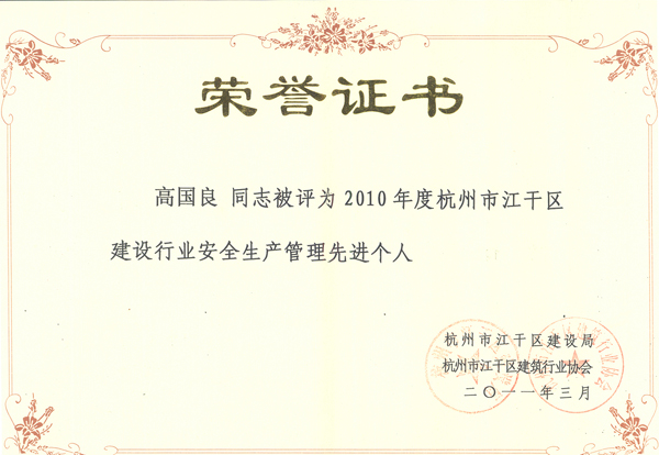 會(huì)議旨在總結(jié)經(jīng)驗(yàn),表彰先進(jìn),現(xiàn)場(chǎng)宣讀了一批在2010年為江干區(qū)經(jīng)濟(jì)發(fā)展做出突出貢獻(xiàn)的建筑企業(yè)和個(gè)人名單,并頒發(fā)了獎(jiǎng)牌和證書。其中,公司被評(píng)為“2010年度杭州市江干區(qū)城市園林綠化優(yōu)秀企業(yè)”,成為上榜的七家企業(yè)之一;公司工程總監(jiān)、市政分公司副總經(jīng)理高國良被評(píng)為“2010年度杭州市江干區(qū)建筑行業(yè)安全生產(chǎn)管理先進(jìn)個(gè)人”。