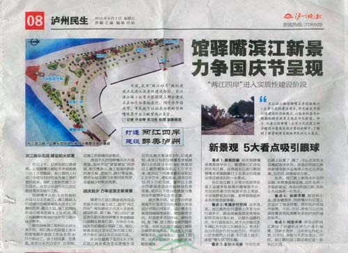 目前,工程改造后的景觀效果突出,有懸挑回廊、瀘州版圖浮雕等多處看點(diǎn),場地空間內(nèi)深厚的意境和文化底蘊(yùn)提升了人們的生活品質(zhì),得到了當(dāng)?shù)厥形?、市政府的高度認(rèn)可。