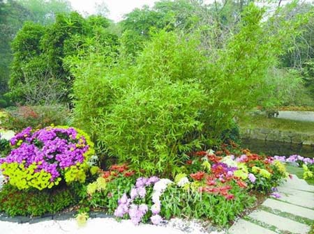 《綠廬》位于杭州市植物園企業(yè)展區(qū)的最南面,通過多種手法的綜合應(yīng)用,營造出了一個(gè)寧靜、祥和、遠(yuǎn)離塵囂而又不失色彩的鄰家后花園。紅樓青瓦,綠樹紅花,出門即水,河畔有山,臨水而居,靠山而行。小徑通幽,移步換景,人工雕琢,又不失自然風(fēng)韻?!耙粋€(gè)遍地植菊的庭院,一幅自然而韻味十足的菊花景觀,人行其中,步伐、氣息、身影交錯,與景觀和諧地融為一體,不但展現(xiàn)出城市生活中人們努力追求或回憶的一種起居文化,更是人生和、淡、清、雅的一種精準(zhǔn)體現(xiàn)。”該工程負(fù)責(zé)人的一番話,道出了《綠廬》所蘊(yùn)含的主題與豐富內(nèi)涵。