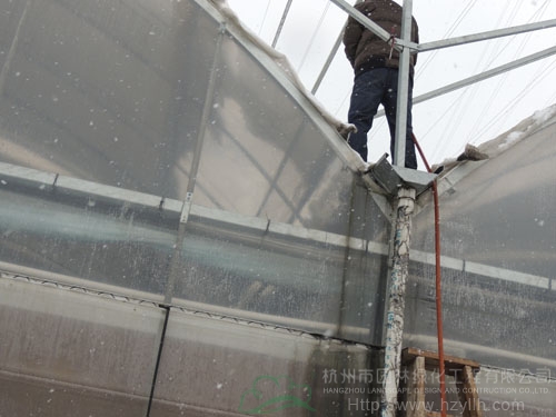 2月19日,一場(chǎng)暴雪突然而至,紛紛飄落的雪花,給了人們一個(gè)措手不及。厚厚的積雪給杭州市園林綠化工程有限公司各苗木基地的設(shè)施及露地花木造成了極大威脅。為了減少損失,基地人員在部門領(lǐng)導(dǎo)的帶領(lǐng)下開展了積極的抗雪工作。