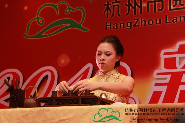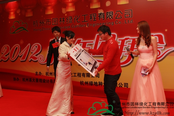 隨著晚宴的開始,精彩的節(jié)目表演也拉開了序幕。一曲熱情激昂的鼓樂《中國(guó)龍》,營(yíng)造出了龍年吉祥喜慶的節(jié)日氛圍,隨后,唯美的獨(dú)舞表演、深情的情歌對(duì)唱、優(yōu)美的葫蘆絲吹唱,功夫茶道、詩詞朗誦、搞笑小品……一個(gè)又一個(gè)精彩節(jié)目,將現(xiàn)場(chǎng)的氣氛一次次推向高潮。而期間最令人期待的,是現(xiàn)場(chǎng)的抽獎(jiǎng)環(huán)節(jié),一等獎(jiǎng)的42寸高清液晶電視機(jī)、二等獎(jiǎng)的皇冠寢室羽絨被、三等獎(jiǎng)的博洋家紡四件套,豐厚的獎(jiǎng)品讓每個(gè)人都期待著幸運(yùn)的降臨,隨著一組組數(shù)字的公布,抽到獎(jiǎng)的人一個(gè)個(gè)歡喜雀躍,興高采烈地領(lǐng)走了獎(jiǎng)品,現(xiàn)場(chǎng)成為一片歡樂的海洋。最后,投標(biāo)中心的一曲《明天會(huì)更好》,傳達(dá)了所有人對(duì)2012年的美好期待和祝愿,也預(yù)示著杭州市園林綠化工程有限公司2012年新春團(tuán)拜會(huì)的圓滿成功!