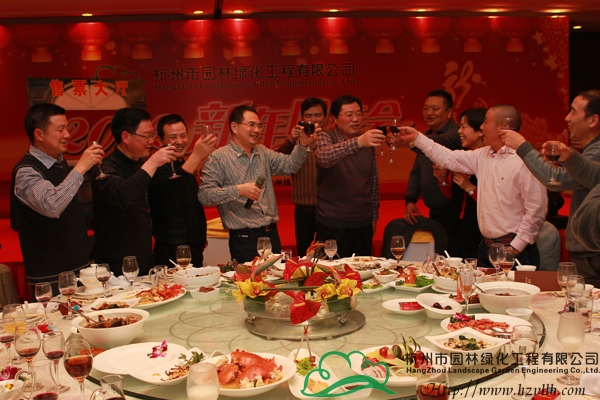 表彰儀式結(jié)束后,董事長(zhǎng)吳光洪發(fā)表了新年致詞。吳董首先對(duì)各位領(lǐng)導(dǎo)和嘉賓的到來表示了熱烈歡迎;然后與大家共同回望了企業(yè)2011年所取得的成就,并對(duì)2012年的發(fā)展進(jìn)行了規(guī)劃和展望,他感謝大家對(duì)杭州園林一路的支持與關(guān)注,希望未來仍能與大家一起攜手前行;最后,吳董舉起手中的酒杯,與大家一起為新的一年干杯,并宣布晚宴正式開始。