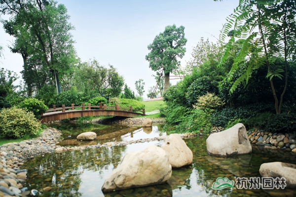 該項(xiàng)目的景觀工程施工總面積21.5萬(wàn)平方米,分兩個(gè)標(biāo)段進(jìn)行。其中,一標(biāo)段施工面積13萬(wàn)平方米,由杭州市園林綠化股份有限公司承建。施工內(nèi)容包括:綠化種植、土建施工、景觀小品、水景、景觀建筑、給排水系統(tǒng)及景觀照明系統(tǒng)等工程。自2012年6月開(kāi)工,至2013年5月竣工,歷時(shí)近一年。