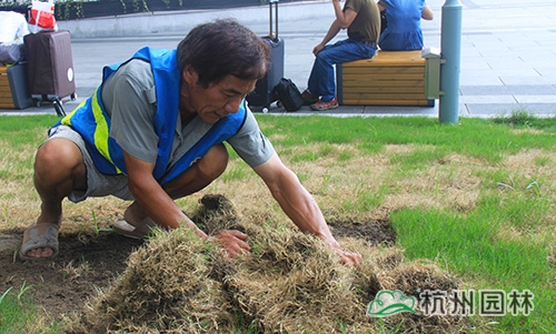 烈日下,他們在進(jìn)行苗木養(yǎng)護(hù)工作,美景,離不開他們的辛苦付出
