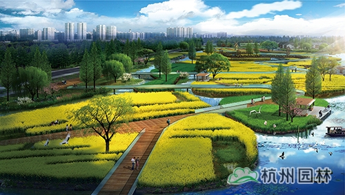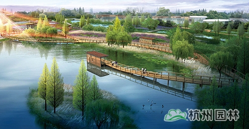樂(lè)活園藝主題區(qū):以家庭園藝花園為主,是公園的圩田濕地體驗(yàn)中心,水道如巷,河汊如網(wǎng)的圩田農(nóng)藝景觀,呈現(xiàn)出田園牧歌般的意境。包含飄帶走廊、水蕩花田等景點(diǎn)。