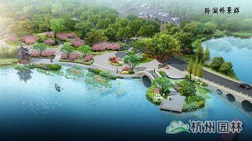 依據(jù)湘湖內(nèi)部自北向南的五堤,各堤路賦以色相植物,打造湘堤紫雨、越堤紅梅、楊堤秋染、長堤金風、賀堤碧玉。
