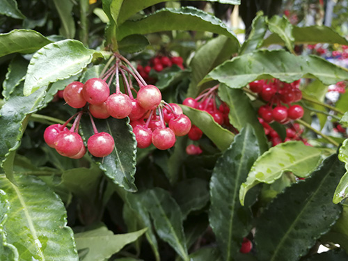 硃砂根的紅果期6個(gè)月以上,且株型優(yōu)美,四季常青,紅果艷麗,圓滑晶瑩,與綠葉形成強(qiáng)烈對比,鮮艷奪目,火紅果實(shí)給人以溫馨、熱情的美感,增添了喜慶、富貴的氣氛,觀賞性極強(qiáng),是優(yōu)良的觀果觀葉花卉。
