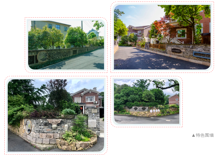 在進(jìn)行景墻施工時(shí),根據(jù)每家的房屋建筑特色選擇了不同的材料和植物配置手法。比如,建筑外立面為紅色的,景墻以紅色磚為主,搭配月季、佛甲草等植物;建筑外立面為灰色的,景墻以淺黃色磚為主,結(jié)合小木樁或仿竹籬笆,搭配石竹、美女櫻等植物;建筑外立面有大理石點(diǎn)綴的,景墻以桐廬石為主,輔以裝飾過(guò)的輪胎,點(diǎn)綴佛甲草、常春藤等植物。不同的處理手法,使得家家戶戶的景墻既有連續(xù)性,又有各自的風(fēng)格。