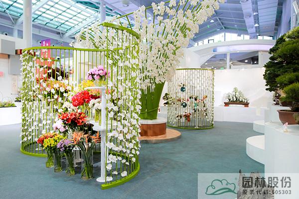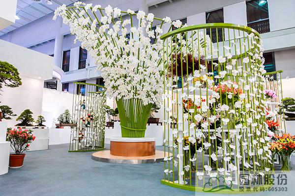 走進館內,各種浙江特色新優(yōu)園林園藝植物產品、花藝作品、盆景作品等,讓人忍不住駐足停留。最引人注目的,則是以一朵朵白色的蝴蝶蘭花朵與仿竹構筑物營造的立體景觀,結合蒼翠欲滴的竹林背景和浙派山水盆景,營造出綠意盎然、生機無限的風景畫卷。寓意浙江是“綠水青山就是金山銀山”理論的發(fā)源地,表現浙江始終踐行“綠水青山就是金山銀山”的理念、大力推進生態(tài)文明建設取得的巨大成就。