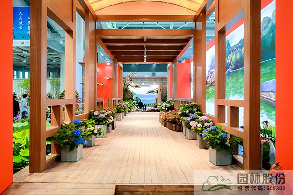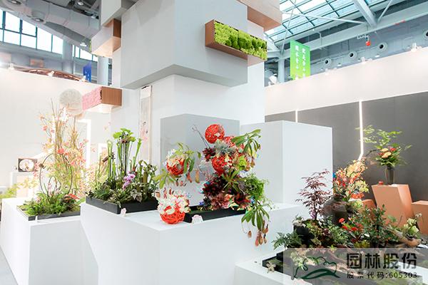 為展現對美好家園的期許,浙江館內以森林環(huán)境與住宅有機融合的未來建筑為原型設計展架,墻面制作城市剪影的燈光,搭配盆花、插花等現代園藝作品,營造出人與自然和諧共生的生活場景,展示浙江人民對美好生活的向往和高質量發(fā)展建設共同富裕示范區(qū)的決心。