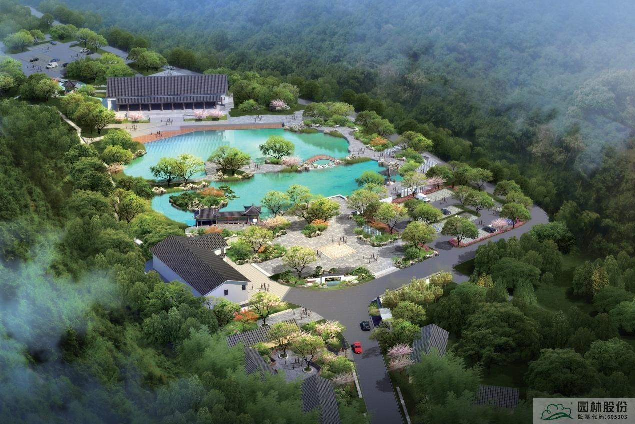 項(xiàng)目位于黃公望隱居地入口,環(huán)境清幽,具有極好的生態(tài)條件。入口區(qū)有黃公望紀(jì)念館和接待中心兩處主要功能區(qū),其間有竹林碧譚鑲嵌其中。