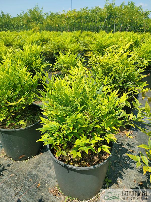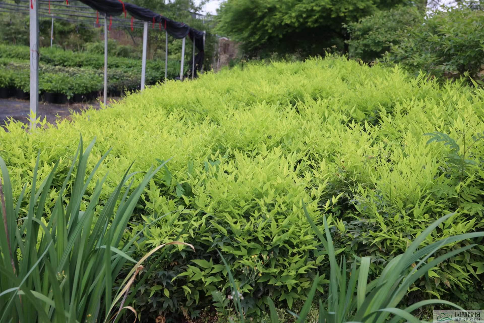 相較于其他南天竹品種,檸檬黃南天竹是少見的金黃色系品種,四季均能保持一個相當(dāng)亮眼的狀態(tài)。低矮飽滿的冠型與密集斜展的金葉,明顯區(qū)別于其他金色系植物品種。