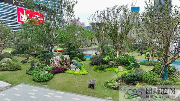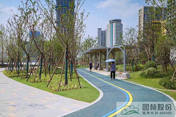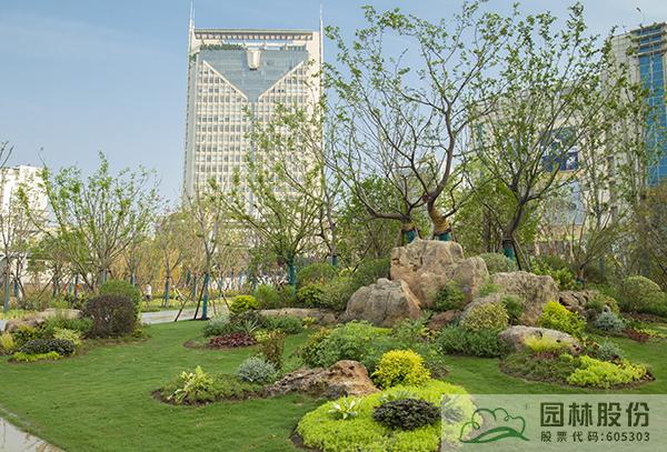項目注重新優(yōu)植物的應用,行道樹采用娜塔莉、中心廣場通道兩側綠地種植美國紅楓、中心廣場內(nèi)種植銀杏樹等色葉樹種。翠綠的枝葉相互掩映,樹下設有林蔭座凳,夏季可有“大樹成蔭”之景,市民可觀賞可乘涼,充分感受自然野趣。主道路行道樹為染井吉野等開花與色葉樹種,周邊綠地采用混合花境置石結合的配置手法,時花、低矮花灌木與景石自然搭配,并大量應用了公司自主研發(fā)的繡球新品種,營造景觀豐富的長效花境景觀。