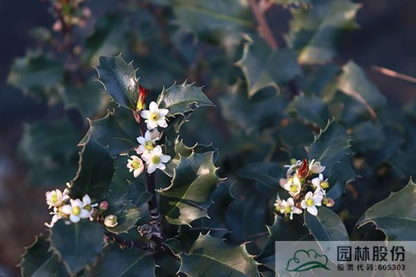其中,彩葉冬青更是其中的佼佼者。除了果實可供觀賞外,它們還擁有黃色葉、藍綠色葉和銀邊葉等彩色葉片。葉形變異也是相當豐富,具四角狀,橢圓形,倒卵形等多種形狀;有些品種具有刺狀葉片,而有些則是光滑的葉片;有些品種葉緣還具有波浪狀的起伏。四季景觀分明,在春季,它們的莖腋間會簇生出一朵朵清新可愛的小花;而在當年生的枝條上,則會抽出亮麗的嫩葉。到了秋季,隨著氣溫的驟降,葉色會變得更加地明艷;冬季的時候,在雌性的植株枝條上,則會掛滿累累的果實。這些不同的形態(tài)和色彩變化,使得彩葉冬青在不同的時間和空間中呈現(xiàn)出不同的姿態(tài)、色彩與意境,從而提升了冬青品種的觀賞價值,成為園林景觀中重要的觀葉植物。