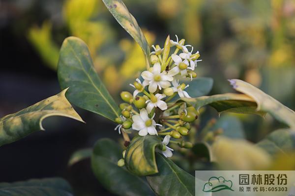 黃金枸骨Ilex × attenuata 'Sunny Foster':是William F. Kosar 于1964年在美國皇家植物園發(fā)現(xiàn)的Ilex×attenuata 'Foster No. 2'芽變。常綠灌木或小喬木,具有很強的萌蘗力和耐修剪性,能夠適應城市環(huán)境,抵抗空氣污染,同時也具有一定的耐鹽性和耐旱性。這些特性使得黃金枸骨成為城市綠化帶的理想彩化樹種,為城市環(huán)境增添了美麗的景觀效果。早在2006年,黃金枸骨就被美國冬青園藝協(xié)會評為年度冬青,充分肯定了其在園藝界的地位和價值。在春季,黃金枸骨開出美麗的小白花,如果與其他雄性冬青搭配種植,到了冬季還會結出鮮艷的紅色果實,為園林景觀增添了豐富的色彩和層次。