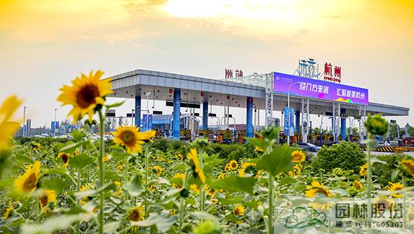 項(xiàng)目采用江南園林自然式組團(tuán)配置造園手法,通過(guò)豎向堆土形成立體空間,以銀杏、黃山欒樹等鄉(xiāng)土樹種為背景基調(diào),丹桂、紫薇及球類構(gòu)成前景,針形、卵形、帚型植物之間相互襯托。結(jié)合杭州亞運(yùn)特色,以立體綠雕塑、亞運(yùn)吉祥物、時(shí)花布置、道旗裝飾、收費(fèi)站門樓及收費(fèi)亭、公安檢查站、花箱等多種展現(xiàn)形式,呈現(xiàn)“綠色亞運(yùn)理念”,展現(xiàn)共贏金銀銅牌,共享綠色盛會(huì),共賞錢江潮涌。