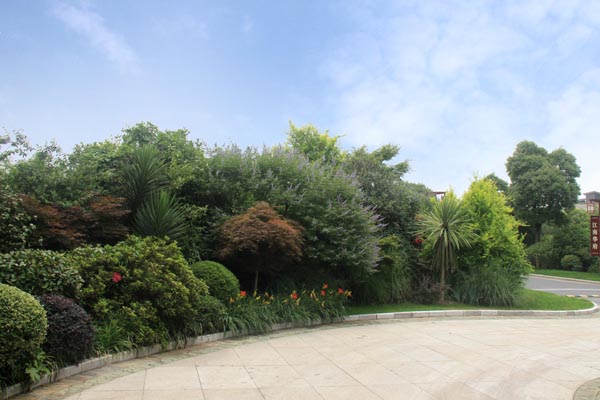 別墅小區(qū)公共景觀的植物配置不但要與建筑、環(huán)境相協調,還要做到多層次、多樣化、多季相,并創(chuàng)造出植被生態(tài)景觀及其圍合空間的豐富多彩,達到人與環(huán)境的和諧統(tǒng)一,因此,植物的選擇與配置顯得尤為重要。據徐建良介紹,工程中的植物選擇與配置遵循三個原則:第一,根據地域特征,考慮季相變化;第二,根據建筑空間的大小、遠近,近景或端景配置觀賞性強的品種,遠景的植物配置則充分考慮空間天際線及建筑物之間的關系;第三,充分考慮林下植物和孤賞植物布置的各個方面,突出自然生長特征和人工修整造型植物之間的反差對比。以此為指導,上層空間選擇了香樟、合歡、玉蘭、樸樹、銀杏等大規(guī)格喬木,中下層空間種植紅葉石楠、枸骨、杜鵑、鋪地柏、火棘等花灌木和地被,再配以微地形的處理,整個植物造景的林冠線、林緣線及空間層次別具特色,從而使得別墅區(qū)的整體景觀層次分明、色彩豐富,既在統(tǒng)一中富于變化,每個區(qū)域又自成風格。特別是每個路口的花境營造,更為小區(qū)增添一抹亮色。