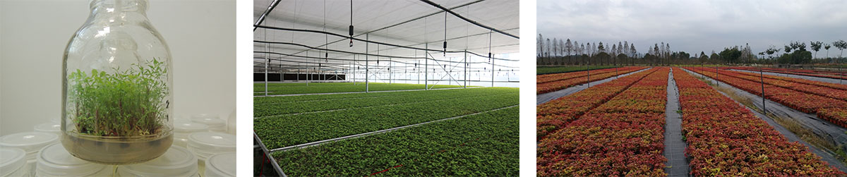 研發(fā)中心擁有1200㎡組培研發(fā)及生產(chǎn)車間,年產(chǎn)組培種苗500萬株。經(jīng)過多年的研發(fā),建立了南天竹屬、冬青屬、礬根屬、紫金牛屬、繡球?qū)佟褜俚榷喾N植物組培快繁技術體系,在木本植物組培快繁技術方面處于國內(nèi)領先水平。